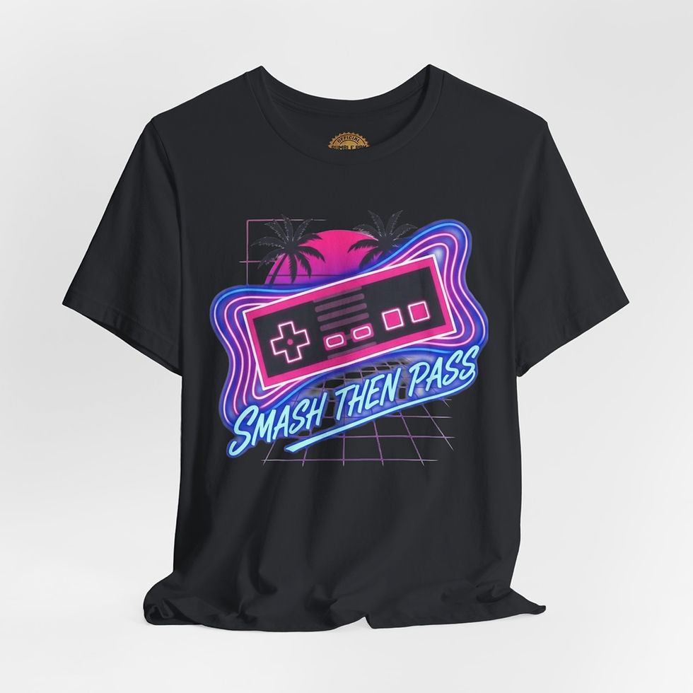 Retro Gamer Tee — "Smash Then Pass" Neon Controller 80s Vaporwave T-Shirt